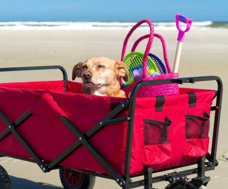 Chairs, umbrellas, coolers, carts, and rinse‑off essentials.